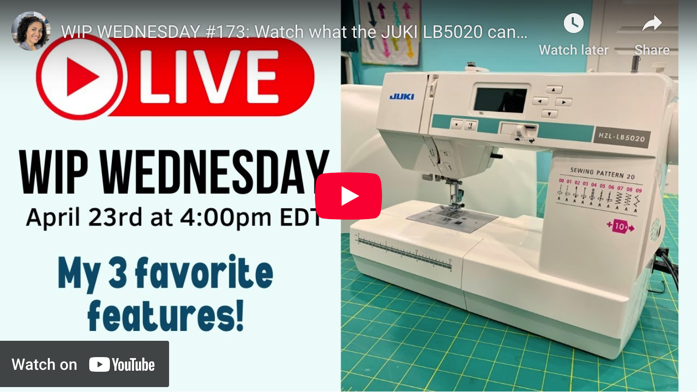 On this episode Vanessa is sharing her 3 favorite features of the JUKI LB5020 sewing machine. It’s back in stock today while supplies last and they are already going quickly. Order yours today before it’s too late!