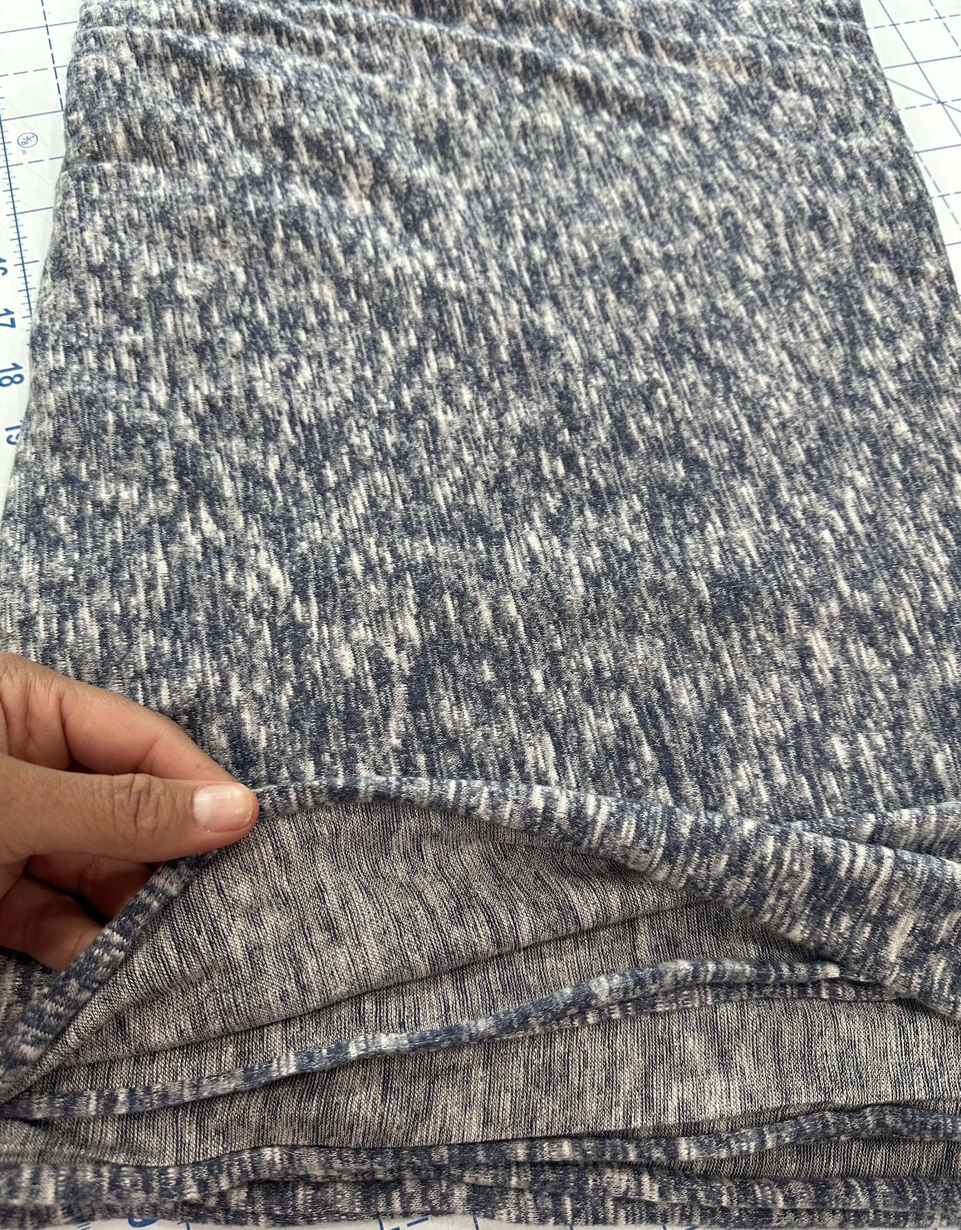 blue and white slub sweater knit fabric