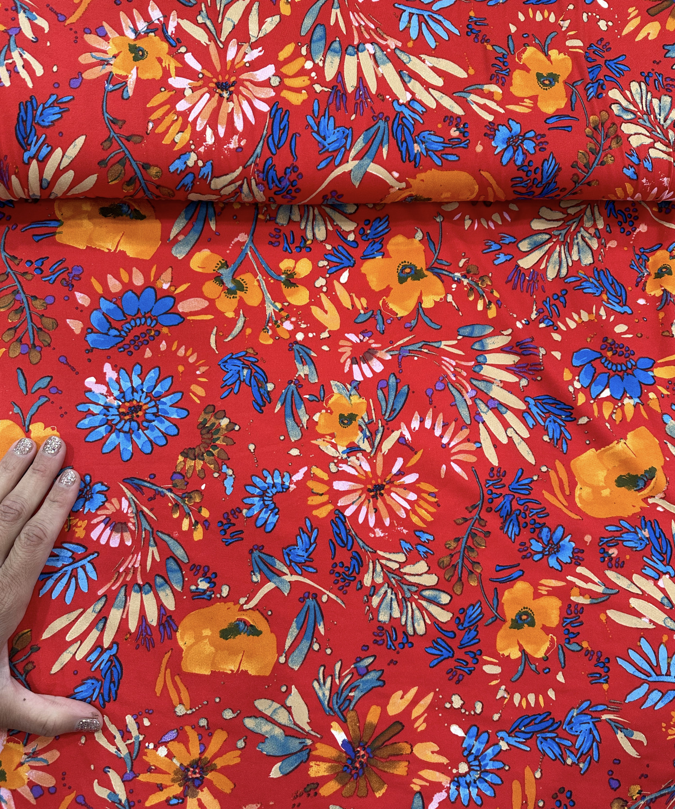 Published May 10, 2024. Size: 1390 × 1666 in Fabric for Westchester Dolman Top- 2 yards – DBP Floral on Red Background- 2 yds