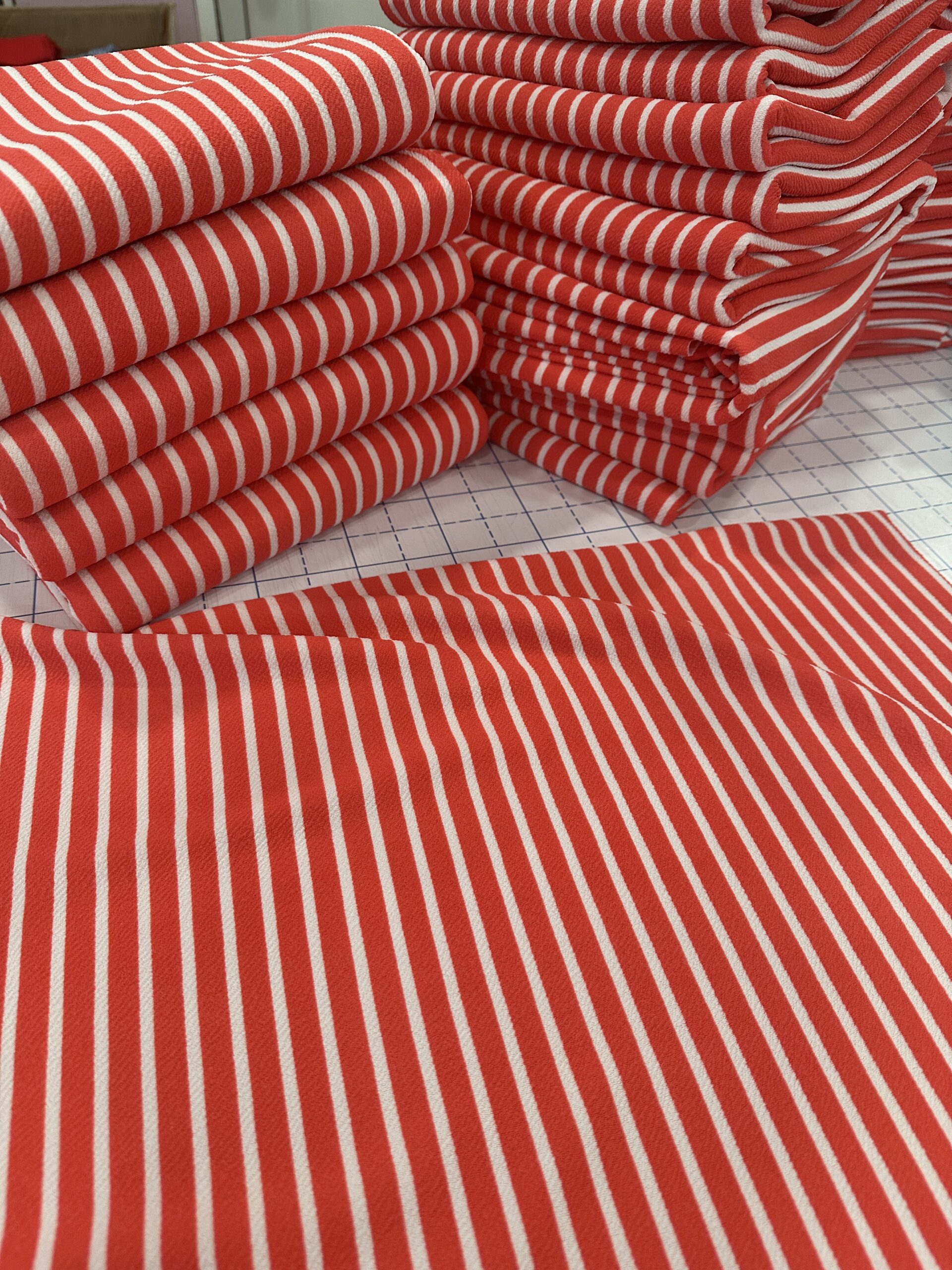 hot coral & white stripe crepe liverpool charlie bomber jacket fabric